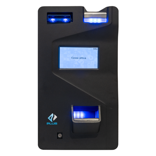 Il chiosco interattivo Plus 10.000 è una cassa automatica completamente autonoma. I clienti di bar, ristoranti, negozi e hotel possono effettuare in completa autonomia pagamenti in contanti (POS opzionale) e di ritirare lo scontrino o la comanda.